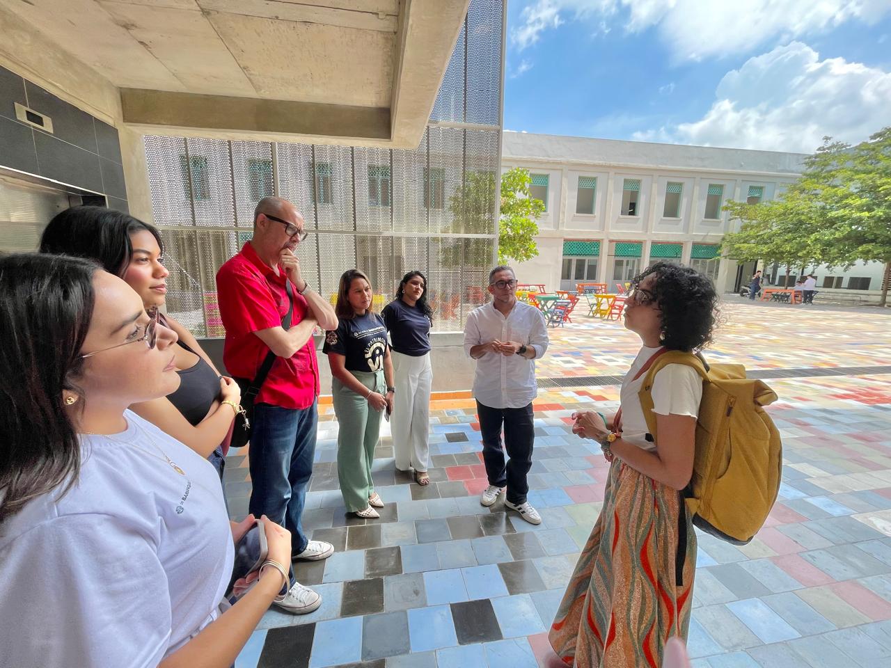 Representantes de embajadas europeas y del sector cultural, junto al equipo de la Oficina de Relaciones Internacionales y Cultura Barranquilla, durante su visita a la Fábrica de Cultura