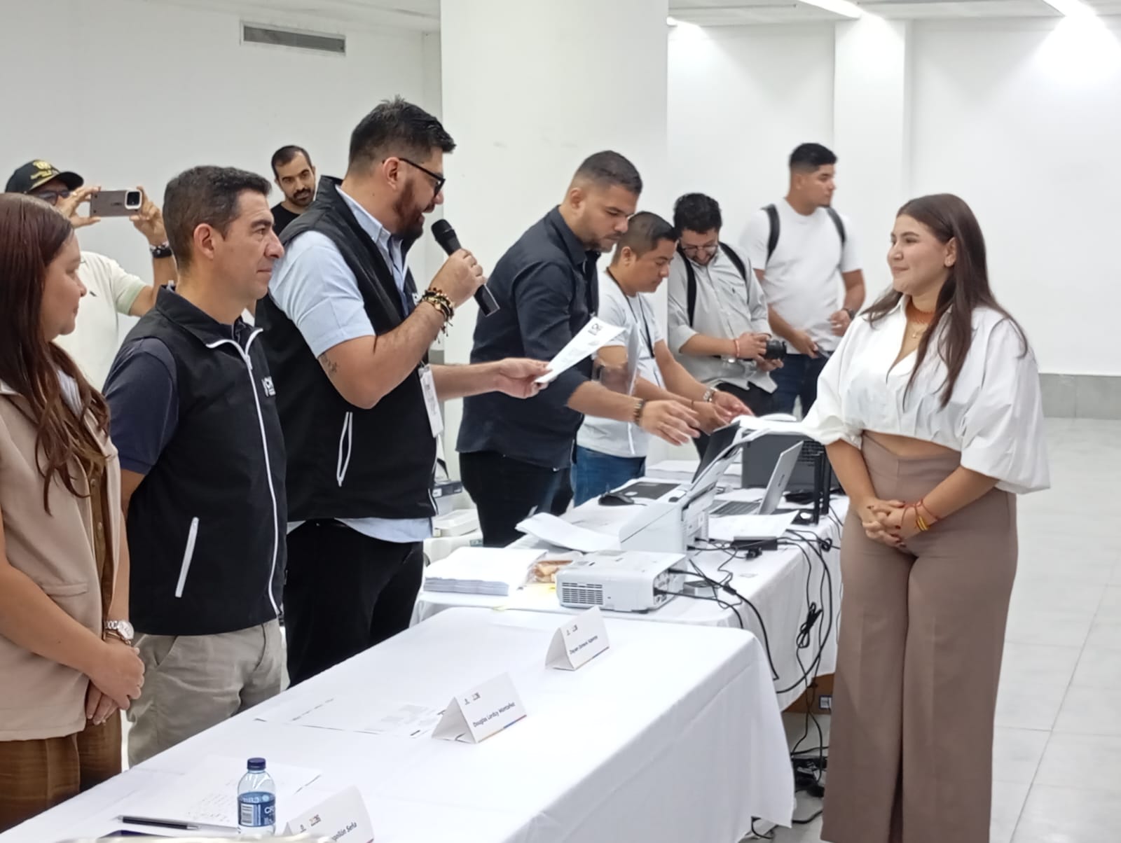 En medio de la alegría de sus acompañantes y familiares, uno a uno fue recibiendo la acreditación. Jazmy Barraza Arraut, César Barrera Vergara, Estefanel Gutiérrez Pérez, Welfran Mendoza Torres, Samir Radi Chemas, Jaime Santamaría Acosta y Andrea Vargas De La Hoz, recibieron de manos de los delegados del CNE, Douglas Lorduy, y Dayan Esmeral, dicho documento que los certifica como nuevos representantes a la cámara, después de 13 días de ardua labor en los escrutinios.