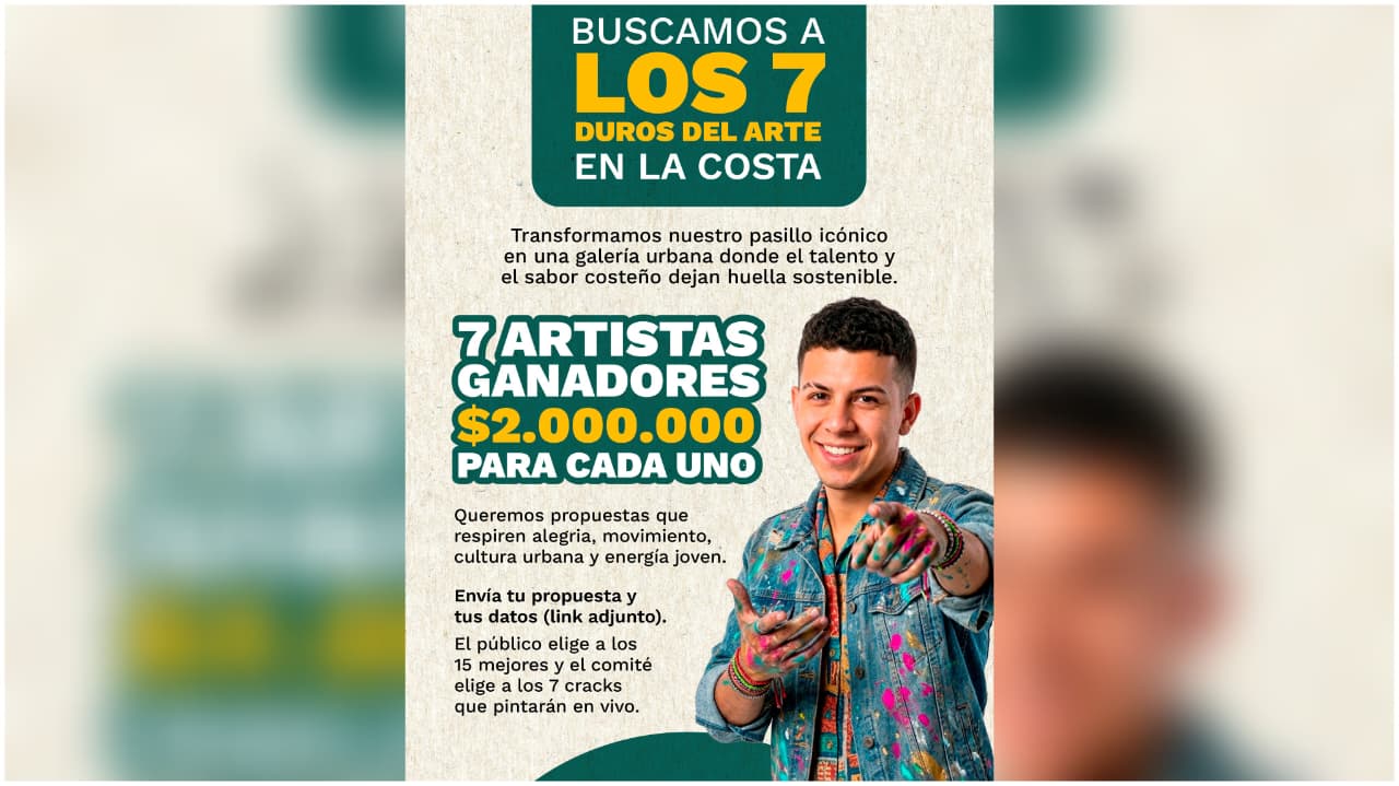 En total serán seleccionados 7 artistas ganadores, cada uno recibirá una tarjeta bono regalo por $2.000.000 para realizar compras presenciales en los establecimientos aliados del Centro Comercial, y vivirán la experiencia de intervenir los espacios del centro comercial en vivo durante el evento oficial del festival, conectando directamente con miles de visitantes.