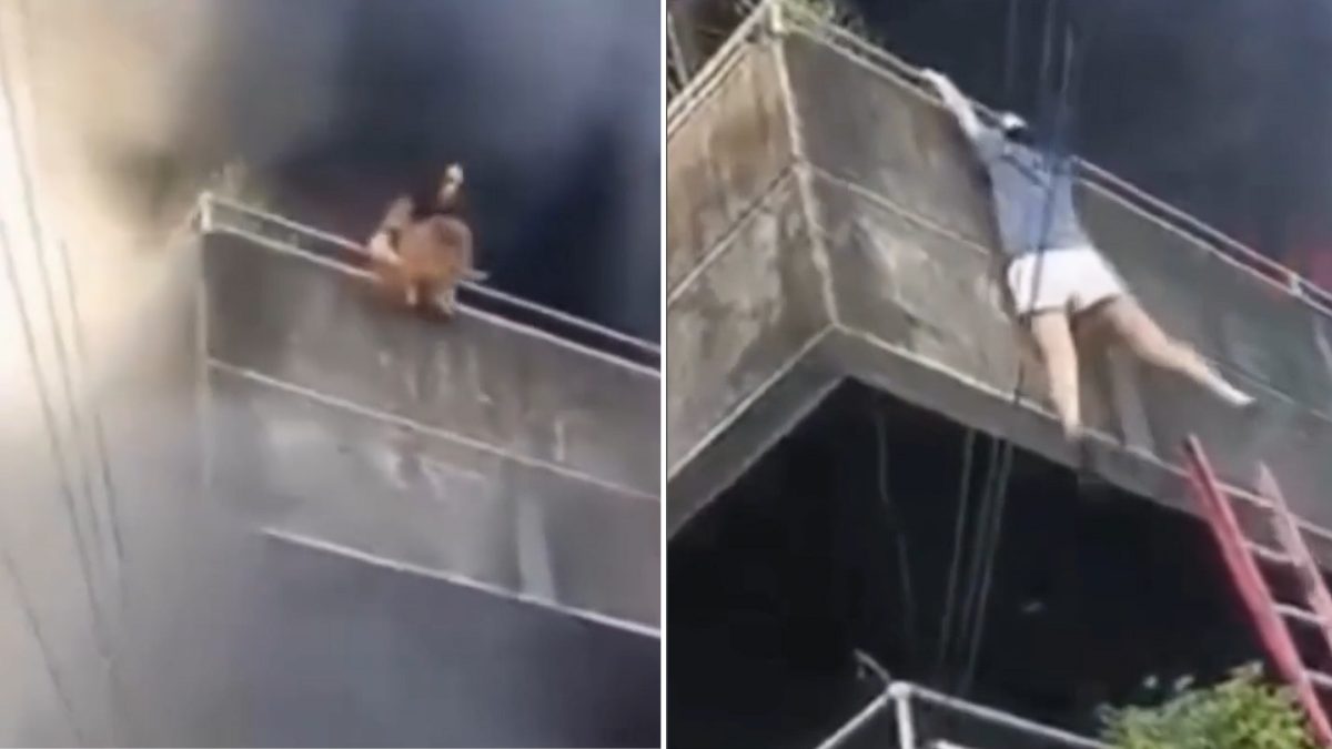 Antes de que llegaran los bomberos, la mujer tomó una decisión que quedó registrada en video. Desde el balcón de su apartamento, lanzó a sus perros para ponerlos a salvo, priorizando la vida de los animales en medio de la emergencia.