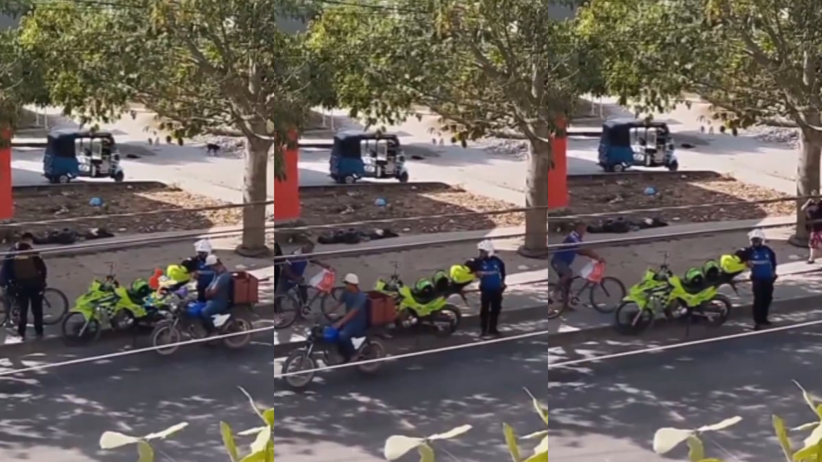 En las imágenes que circulan en las plataformas digitales, se observa el momento exacto en el que el conductor de una motocicleta le entrega un billete a un funcionario del tránsito, al parecer, como soborno para que no le colocara una infracción.