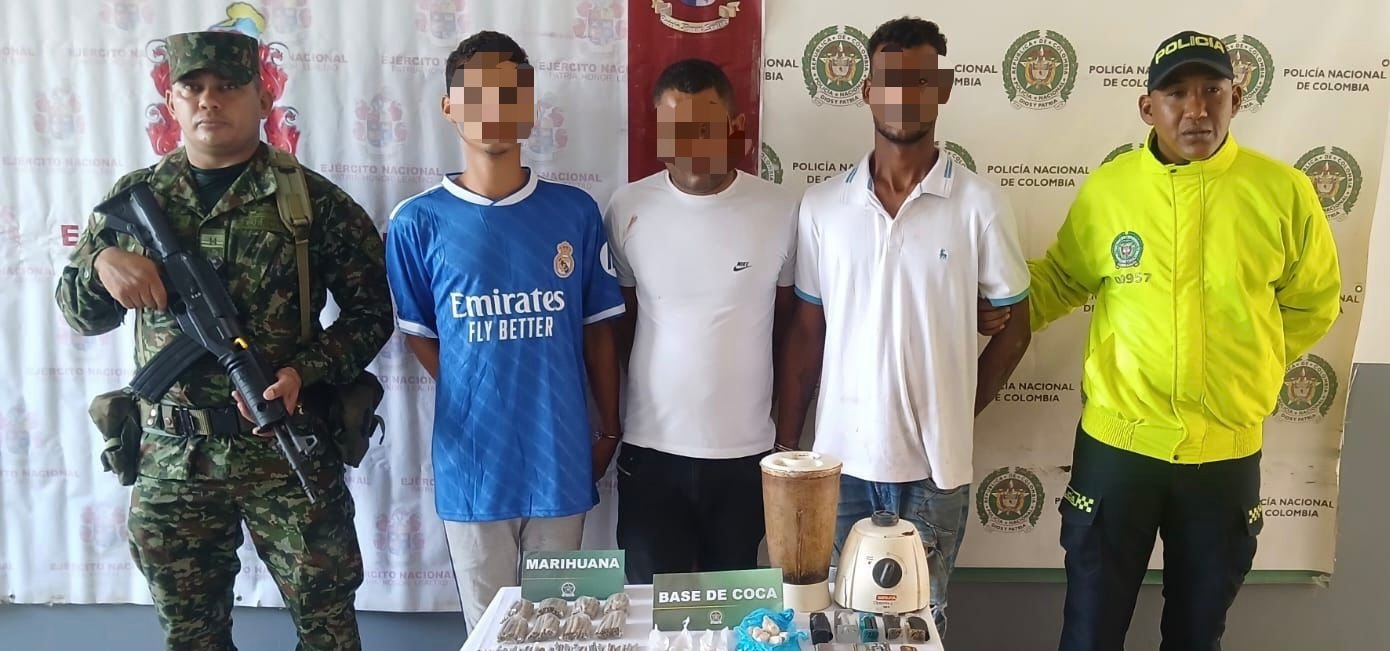 La Policía del Atlántico mediante actividades de investigación, en coordinación con la Fiscalía 15 y el apoyo del Ejército Nacional, logró la captura en flagrancia de tres personas, señaladas del delito de tráfico, fabricación o porte de estupefacientes.