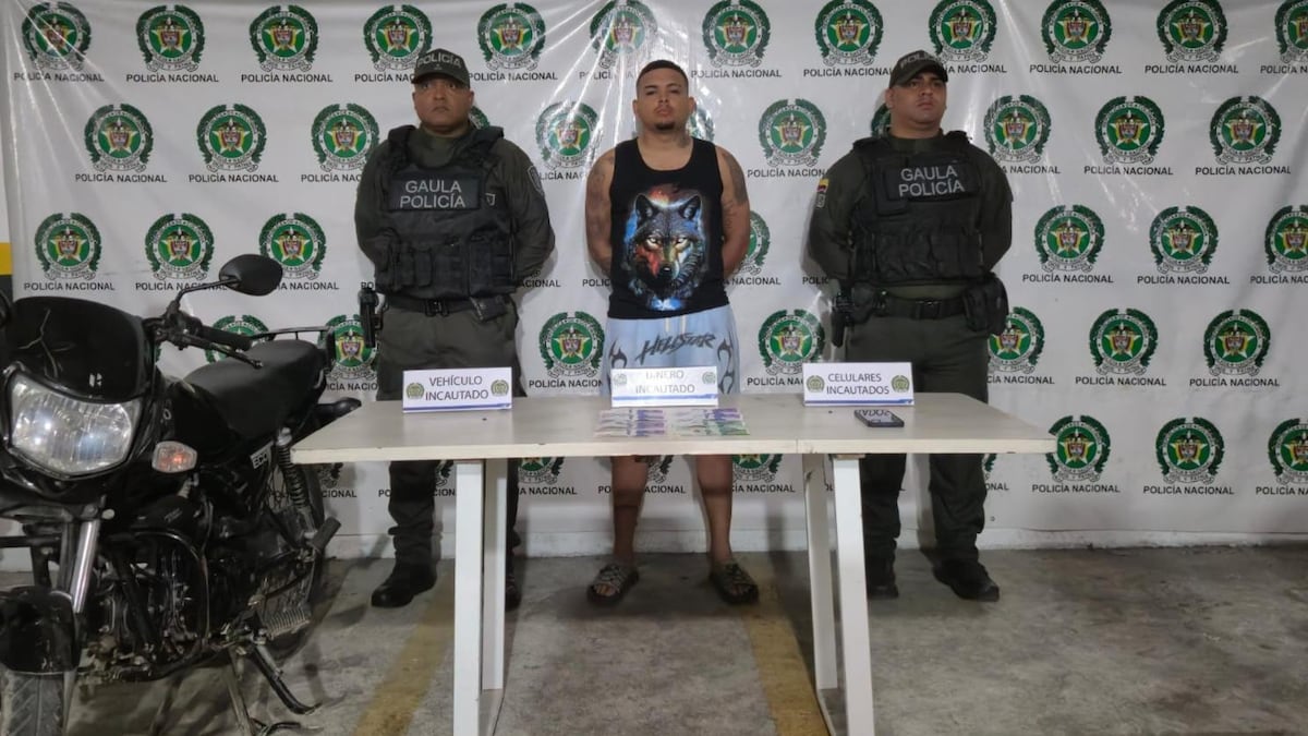 La Policía Nacional, en coordinación con la Fiscalía General de la Nación y a través de su grupo Gaula, logró la captura en flagrancia de alias Lobo, presunto extorsionista de ‘Los Costeños’, quien intimidaba a los comerciantes en el municipio de Soledad.