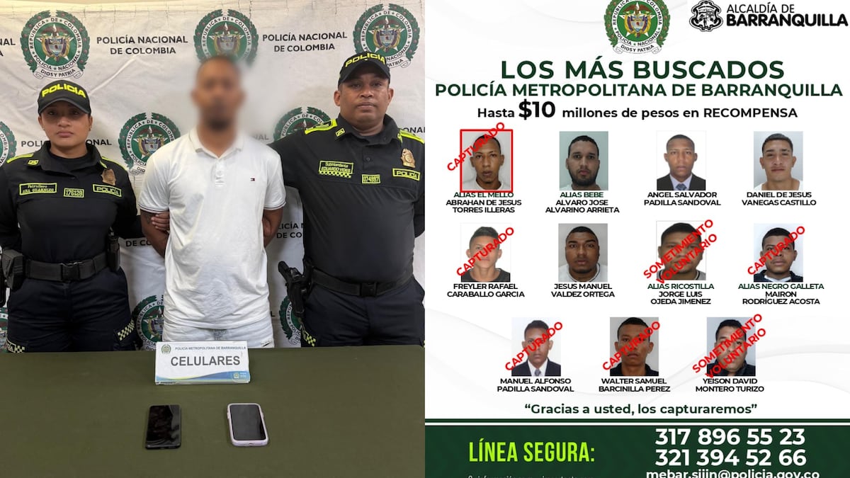 La Policía Metropolitana de Barranquilla confirmó la captura de uno de los hombres que aparece en el cartel de los más buscados por homicidio en Barranquilla y su área metropolitana. Se trata de alias El Mello, quien es requerido por los delitos de concierto para delinquir con fines de homicidio, porte ilegal de armas de fuego, tráfico de estupefacientes y extorsión.