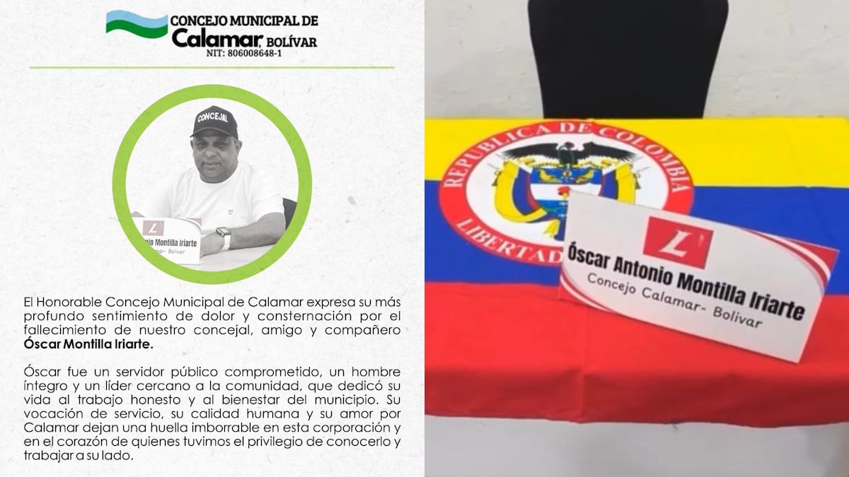 “El honorable Concejo Municipal de Calamar expresa su más profundo sentimiento de dolor y consternación por el fallecimiento de nuestro concejal, amigo y compañero Óscar Montilla Iriarte”, se lee en el comunicado.