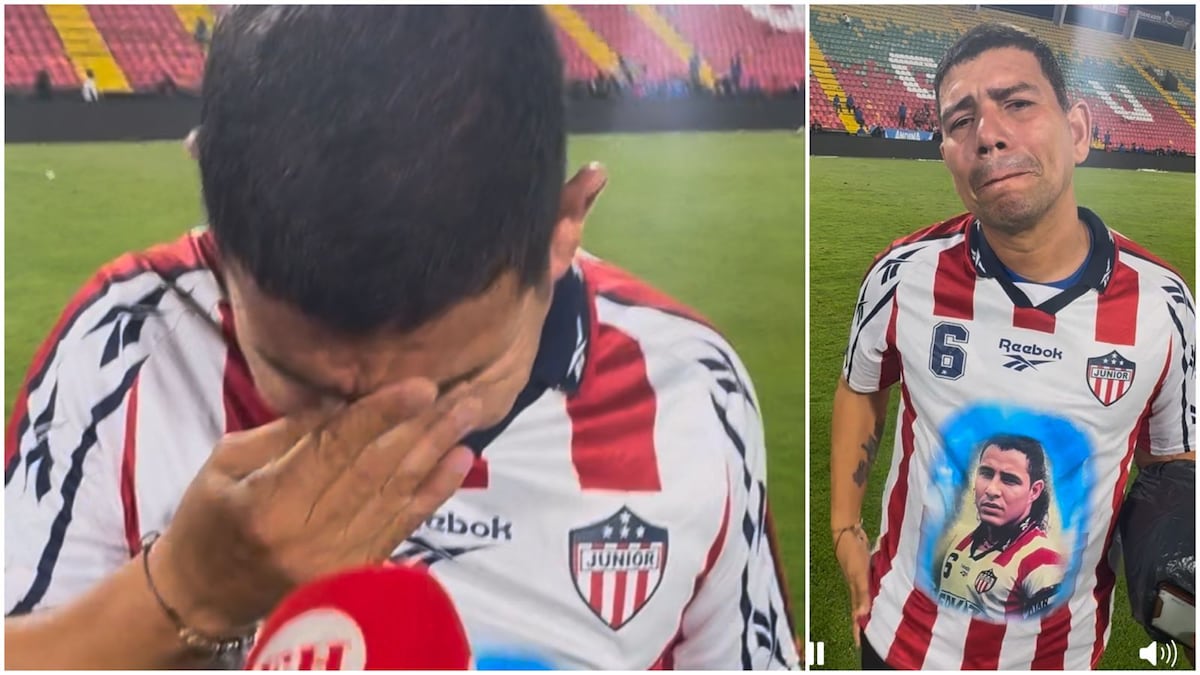 El utilero rojiblanco no pudo contener el llanto durante las celebraciones en el gramado del estadio Manuel Murillo Toro, de Ibagué, cuando empezó a recordar y a homenajear a Jorge Bolaño, el legendario volante samario que murió el 6 de abril de este año, en Cúcuta, tras sufrir un infarto.