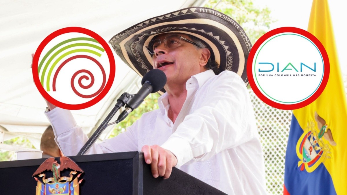 Abogados dicen si Gustavo Petro puede usar redes sociales de entidades / Foto de fondo (Presidencia) y en círculos logos de Servicio Geológico Colombiano (Facebook Servicio Geológico Colombiano) y Dian (Facebook DIAN Dirección de Impuestos y Aduanas Nacionales de Colombia)
