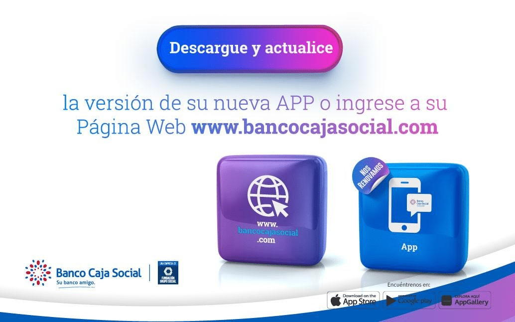 Costado Caja Social ha anunciado que al 2 de abril de 2 de Barranquilla de Corregidor, Distrito Peculiar, Industrial y Puerto25, desactiva su antigua aplicación móvil.